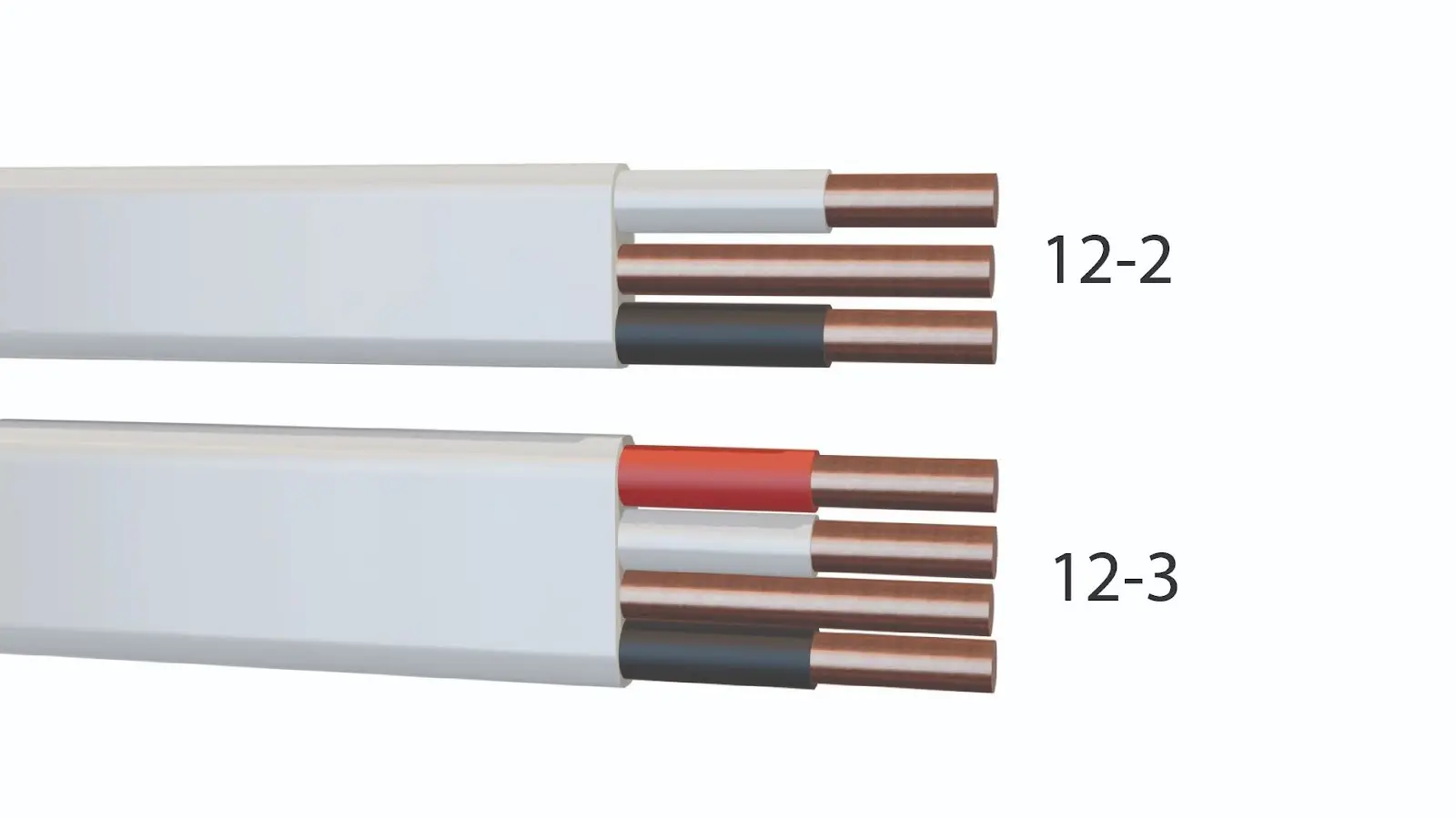 12/2 (top) has 2 wires + ground. 12/3 (bottom) adds a red wire for an extra hot or traveler.