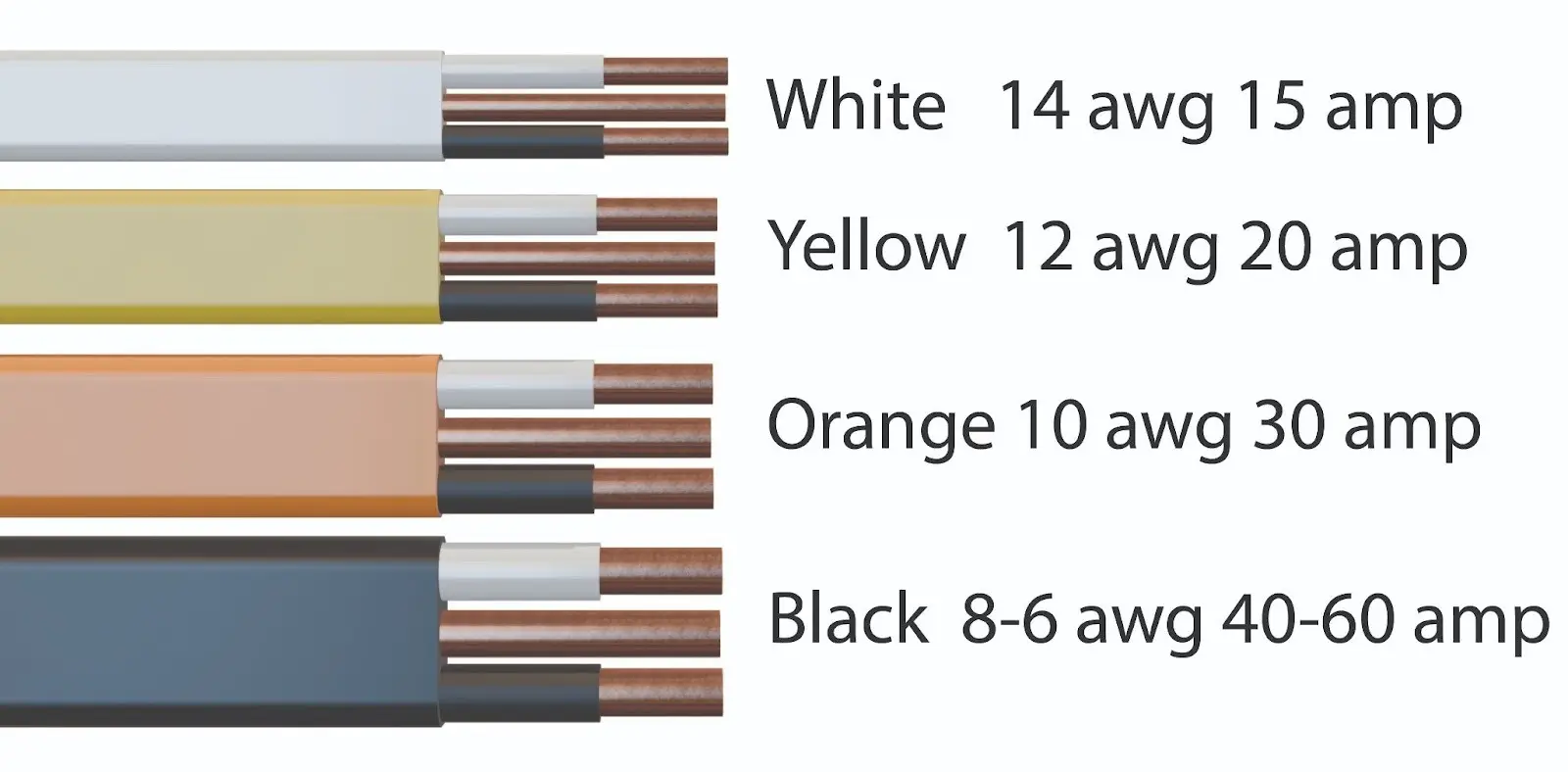 - Yellow: 12 AWG (20 Amps)