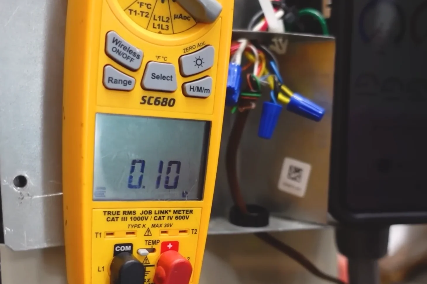 Since a thermostat should be open when the coil is not frozen, we want to remove the thermostat plug from the board and look for OL when the coil is above the defrost temperature. Once the thermostat sensor closes, you’ll see a proper ohm reading if you measure the circuit’s resistance (it may not be very much, like 0.1 ohms).