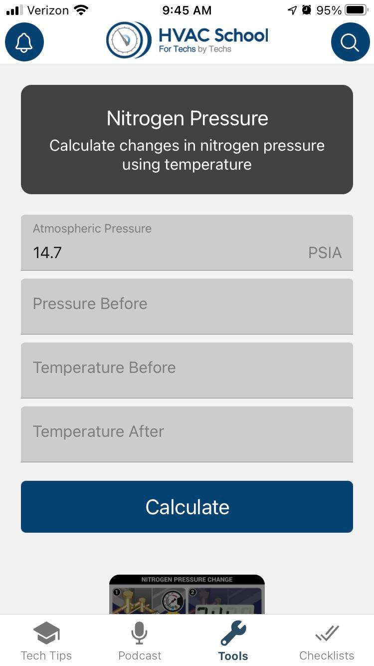 Now, we have a simple equation we can plug our numbers into and get the answer, right? Not quite yet. We have one more step before we get the calculators out. We need to convert the pressure and temperature valves that we have to absolute pressure and temperature readings, so add 14.7 to the pressure and 459.76° (Rankine scale) to the temperature to get to absolute scales.
