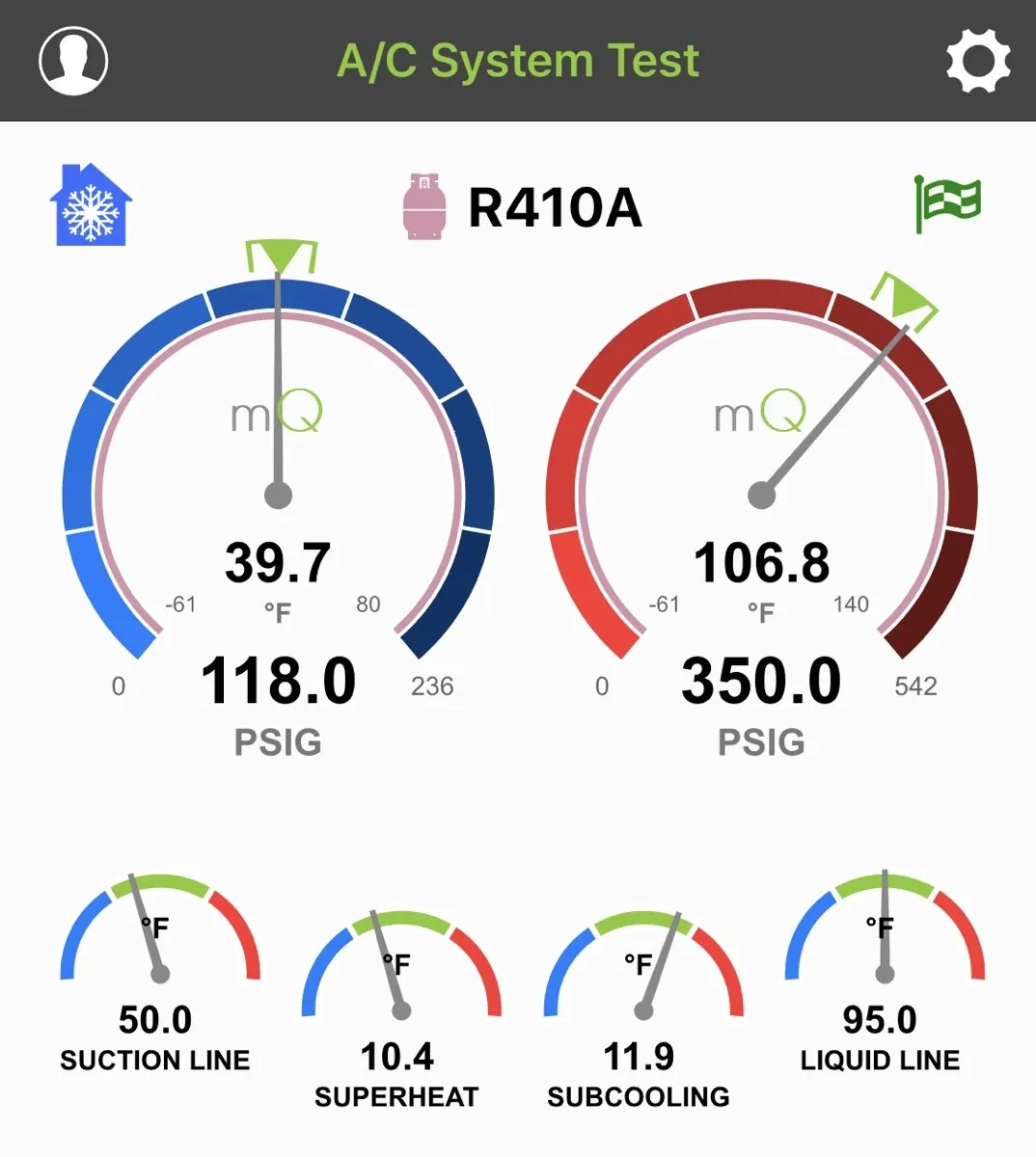 Most, if not all, manufacturers have a charging chart available with their respective units. With the information you have gathered on indoor and outdoor temperatures, you can calculate the recommended superheat. In a pinch, you can also use a superheat calculator, such as the Trane superheat calculator, a free app like our superheat calculator (top left), or the MeasureQuick app. A good calculator will require that you determine the wet-bulb temperature in the return air stream. Without a sling, digital psychrometer, or hygrometer, you will not be able to determine wet-bulb temperature.
