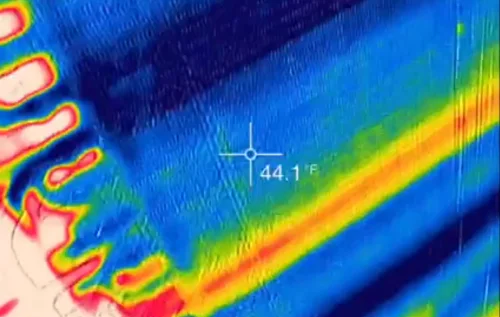 Using a similar principle, we can use the thermal imager to find a clear point where the temperature drops in refrigerant lines.